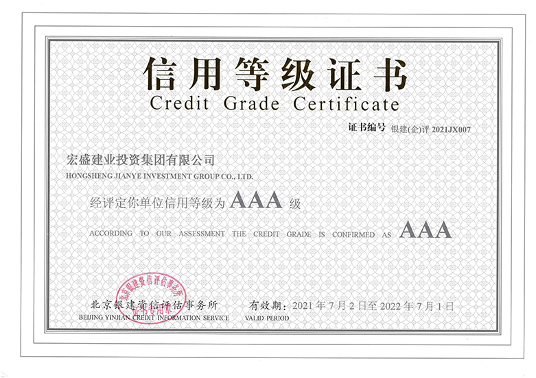 多年來(lái),宏盛建業(yè)投資集團(tuán)始終秉承“鑄精品工程,創(chuàng)美好生活”的核心價(jià)值觀,堅(jiān)守“依法經(jīng)營(yíng),誠(chéng)實(shí)守信”的企業(yè)原則和社會(huì)責(zé)任,堅(jiān)持不斷深化與各單位之間合作,促進(jìn)施工和服務(wù)質(zhì)量的全面提升,贏得了各級(jí)政府、廣大客戶的高度贊譽(yù),牢固樹立起誠(chéng)信企業(yè)的良好形象,充分發(fā)揮了誠(chéng)實(shí)守信的示范作用。宏盛建業(yè)先后被中國(guó)建筑業(yè)協(xié)會(huì)、江西省市場(chǎng)監(jiān)督管理局、北京銀建資信評(píng)估事務(wù)所等單位先后評(píng)定信用等級(jí)AAA級(jí)、中國(guó)建設(shè)銀行南昌鐵路支行信用等級(jí)評(píng)定6級(jí)(AA+),斬獲信用評(píng)定領(lǐng)域多項(xiàng)殊榮。