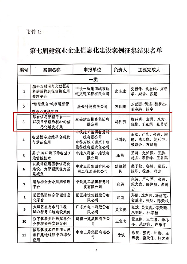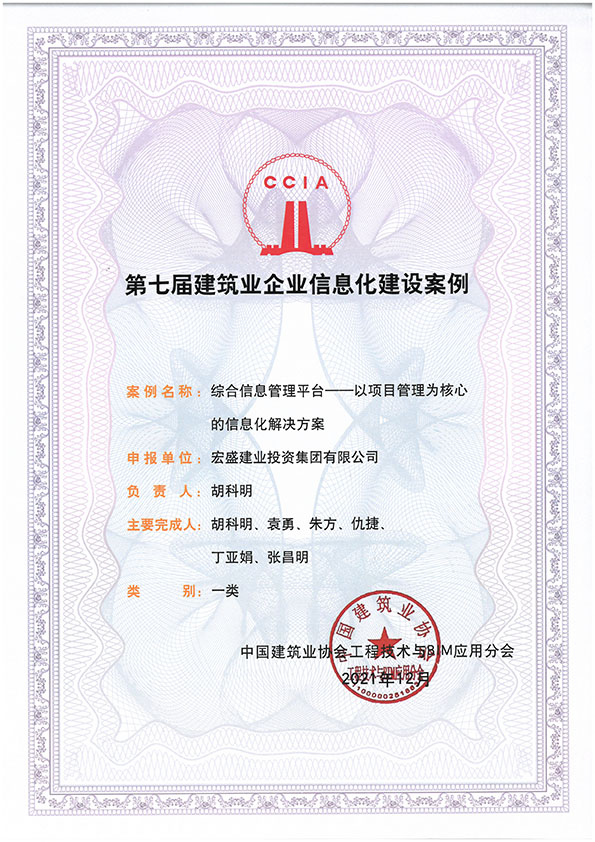 宏盛建業(yè)綜合信息管理平臺(tái)入選第七屆建筑企業(yè)信息化案例“一類成果”