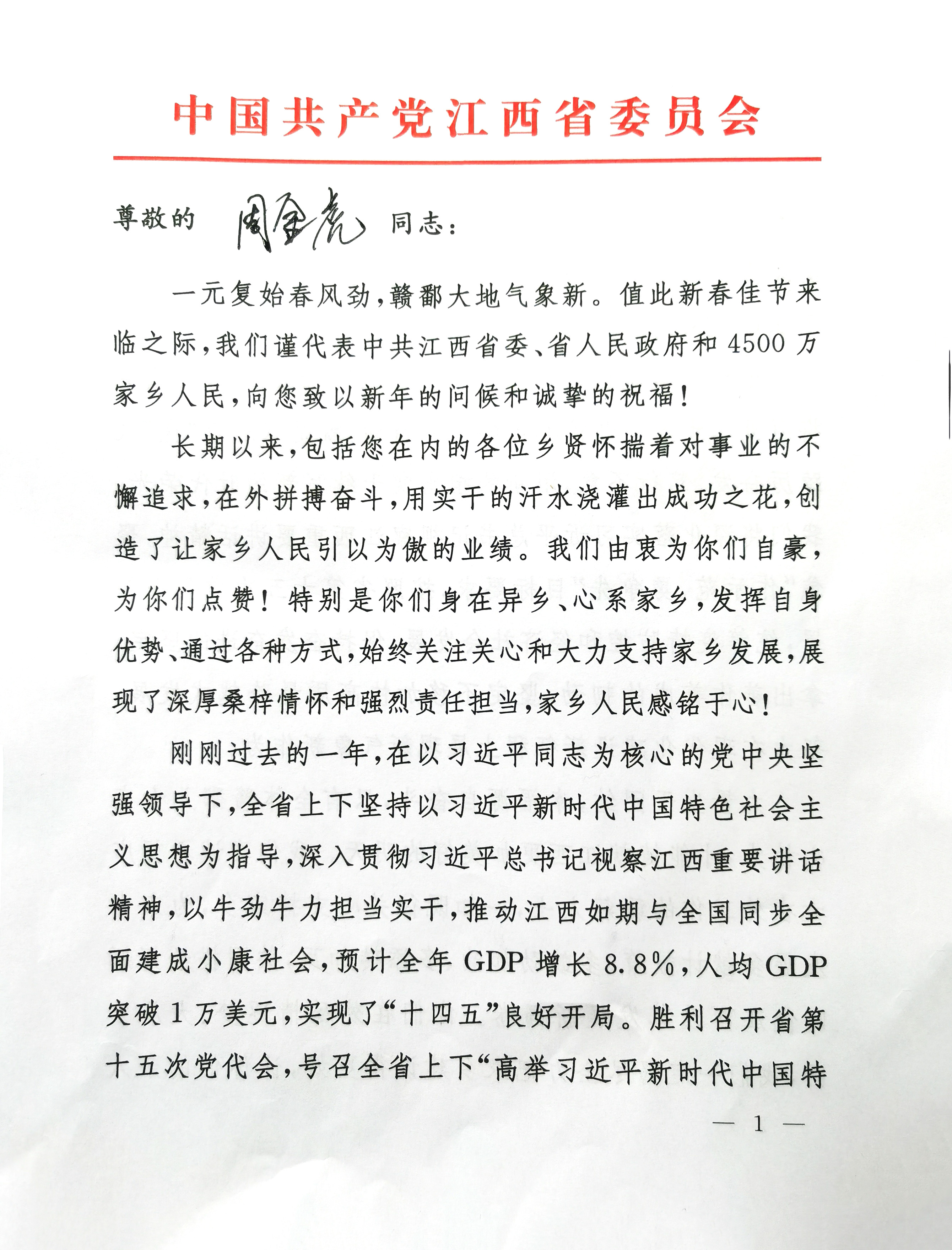 來(lái)自江西省委、省政府的新年問(wèn)候