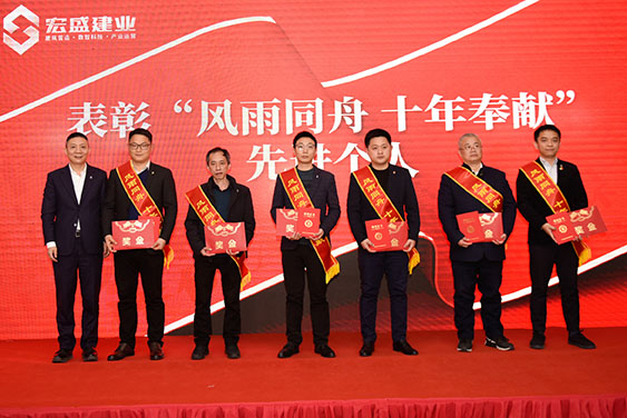 集團(tuán)董事長(zhǎng)周金虎親自為“風(fēng)雨同舟、十年奉獻(xiàn)”特別貢獻(xiàn)獎(jiǎng)獲得者們頒獎(jiǎng),并為他們佩戴定制款鉆石司徽。經(jīng)歷輝煌榮耀、無懼坎坷波瀾,感恩其十年如一日,始終如家人般堅(jiān)守初心、不離不棄、一路相伴。受表彰人員分別是: