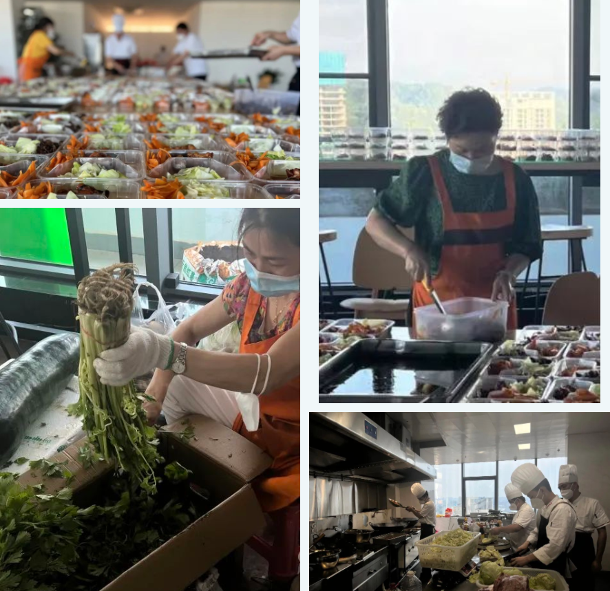隔離人員有老人,有小孩,有外地游客,更有一些餐飲有特殊需求的人員,志愿者貼心配備了特殊餐點;配餐結(jié)束后,志愿者還需要外出采買第二天的新鮮食材、樓內(nèi)隔離人員的生活必需品、對樓內(nèi)各層進行常態(tài)化消殺和保潔,對設(shè)施設(shè)備進行巡檢;深夜,后廚還要準(zhǔn)備第二天的部分預(yù)制餐點至凌晨。