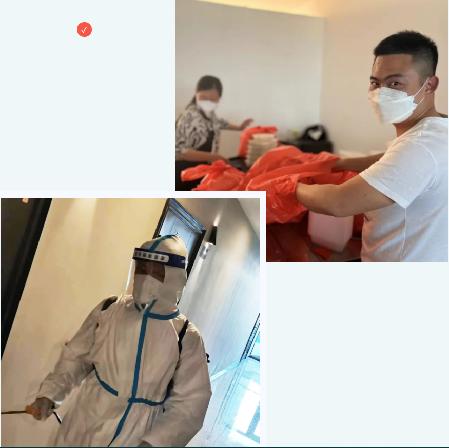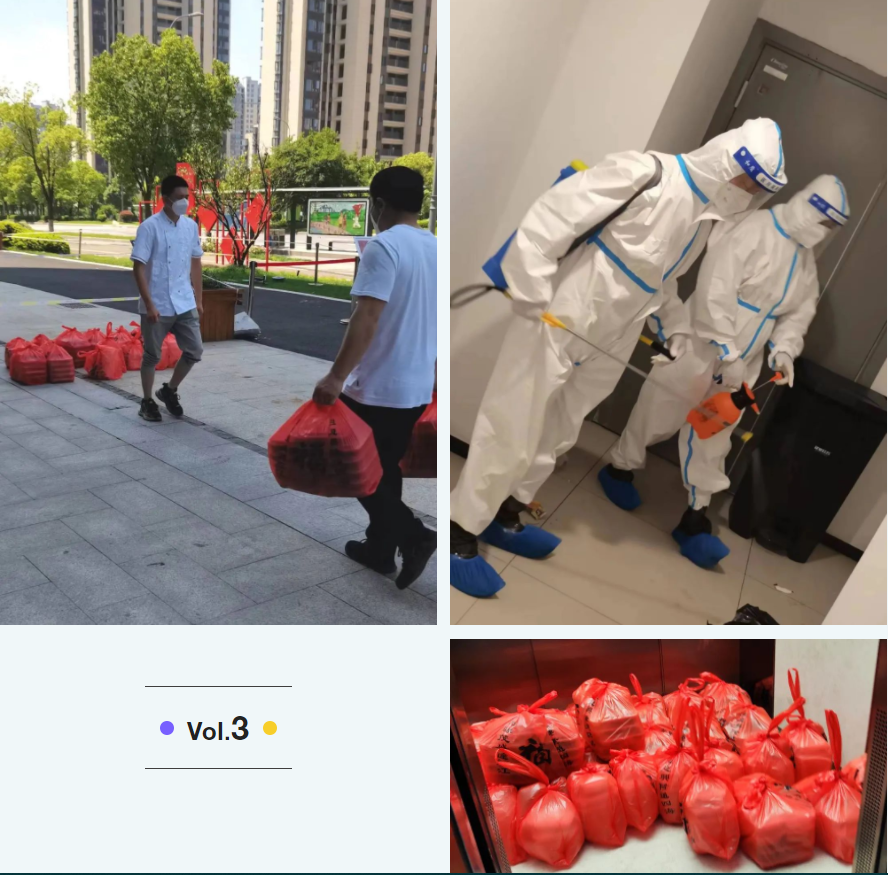 在接到通知的第一時間,宏盛建業(yè)上饒的同事們聞令而動、迅速集結(jié)、緊急籌備,專門配備了后勤保障、餐飲配送、安保執(zhí)勤近20名志愿者,每天他們都需要做好防疫工作組和隔離人員一日三餐、物資采購、外圍環(huán)境消殺等保障服務(wù)。為了更好地開展工作,所有宏盛志愿者都主動堅持24小時值守,形成閉環(huán)管理,從4月29日開始至今已有7天沒有回家,一直堅守在一線,這當(dāng)中有部分同事的家人也在不同的縣區(qū),堅守在不同的一線。這些勤勞又可愛的宏盛志愿者舍小家、為大家,始終用心、用情,把愛與溫暖傳遞給隔離中的每一位人員。