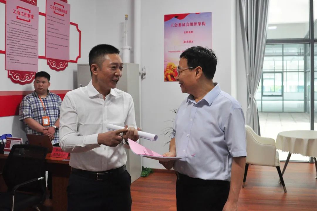 劉強(qiáng)指出,企業(yè)工會(huì)是黨聯(lián)系工人群眾的橋梁和紐帶,也是工會(huì)會(huì)員和職工利益的代表。我們黨歷來對(duì)工會(huì)工作都高度重視和大力支持,希望你們工會(huì)平時(shí)要多傾聽員工心聲,多組織開展員工活動(dòng),關(guān)注員工思想生活狀態(tài)。要維護(hù)好職工合法權(quán)益、竭誠服務(wù)好職工群眾,做好新時(shí)代工會(huì)干部應(yīng)有的責(zé)任擔(dān)當(dāng)。要堅(jiān)持“黨建帶工建”思想引領(lǐng),繼續(xù)加大工作力度,不斷探索新時(shí)代民營(yíng)企業(yè)做好工會(huì)工作的新方法、新模式,為激發(fā)職工群眾的工作熱情和推動(dòng)園區(qū)經(jīng)濟(jì)高質(zhì)量發(fā)展作出更多貢獻(xiàn)。