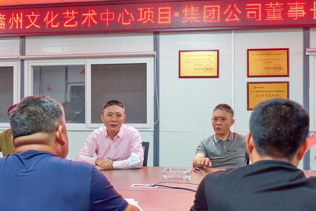 7月13日,集團董事長周金虎赴贛州經(jīng)濟技術(shù)開發(fā)區(qū)文化藝術(shù)中心建設(shè)項目(A、C地塊)調(diào)研并召開工作指導會議,副董事長、總裁周金旺,副總裁陳立剛陪同出席會議。