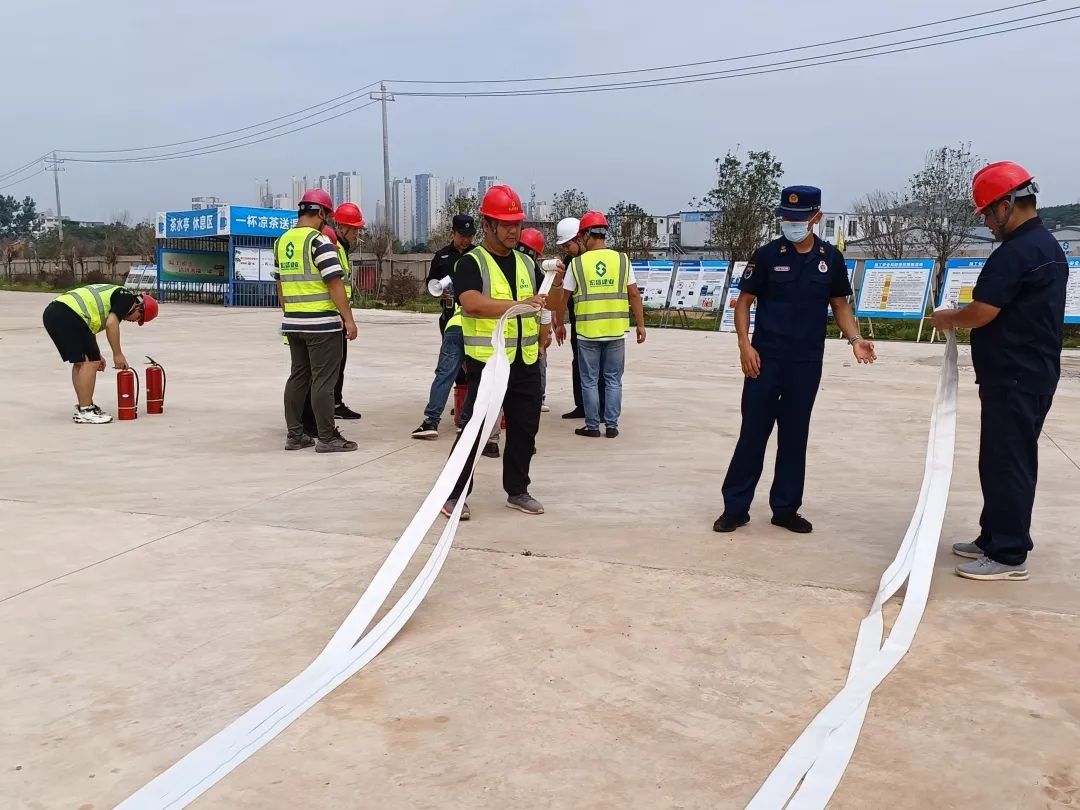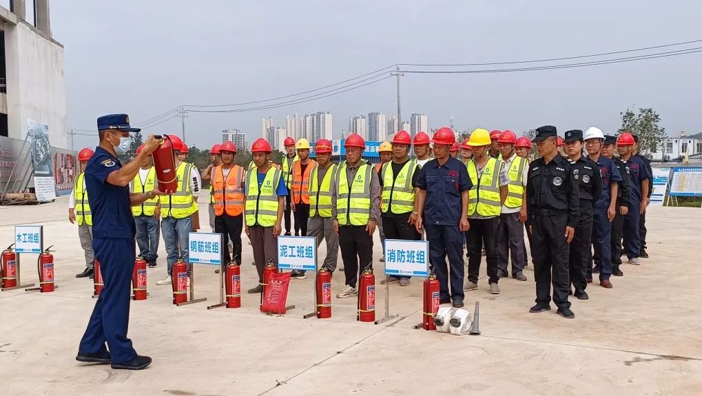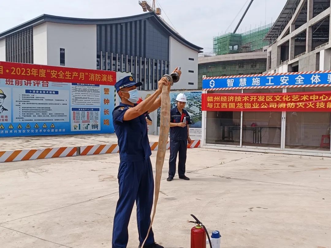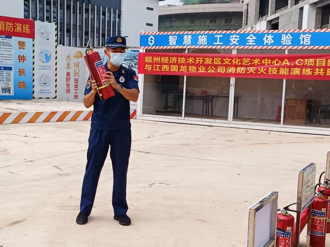 2023年6月11日上午9點,贛州經(jīng)開區(qū)文化藝術(shù)中心項目部與江西國龍物業(yè)公司在項目部現(xiàn)場聯(lián)合開展消防演練。項目部負(fù)責(zé)人葉興武、全體項目管理人員及各班組成員一起參于本次消防演練。此次消防演練特別邀請了贛州應(yīng)急救援隊中隊長俞加寶進行全程指導(dǎo)講解。