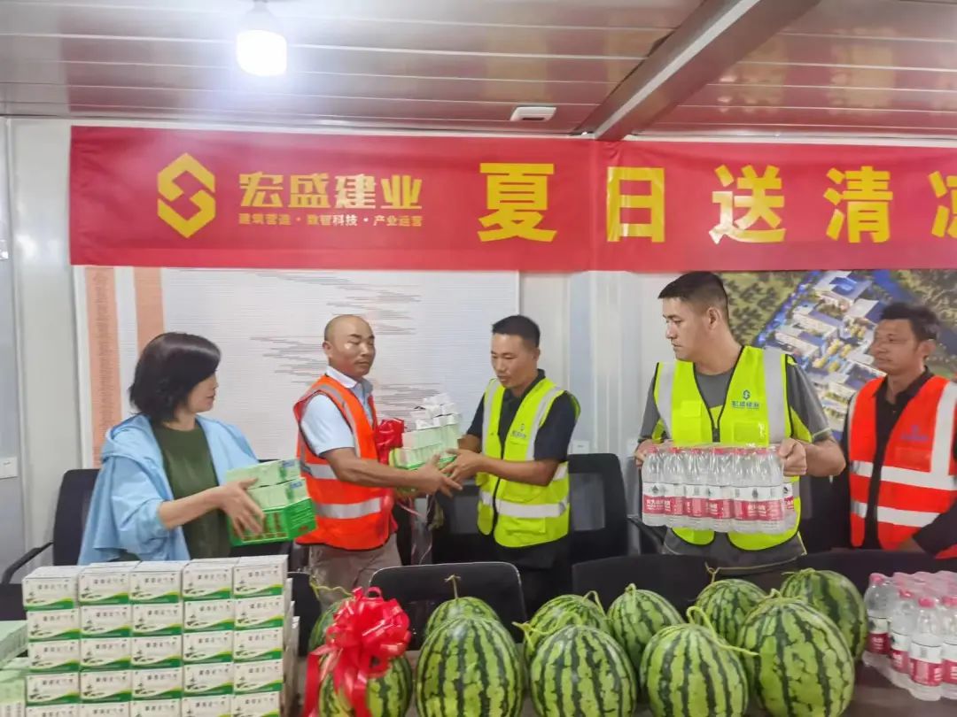 時值盛夏,驕陽似火,熱浪襲人,宏盛集團(tuán)杜甫中學(xué)項目部的一線員工依然不懼烈日驕陽,堅守工作崗位,趕工期,搶進(jìn)度,為確保項目質(zhì)量安全等各項工作有序開展。7月4日,宏盛集團(tuán)杜甫中學(xué)項目部項目負(fù)責(zé)人龍昌榮代表集團(tuán)給項目上的一線員工送去防暑降溫物品,并深切慰問宏盛建設(shè)者們,帶去集團(tuán)領(lǐng)導(dǎo)的深切關(guān)懷。