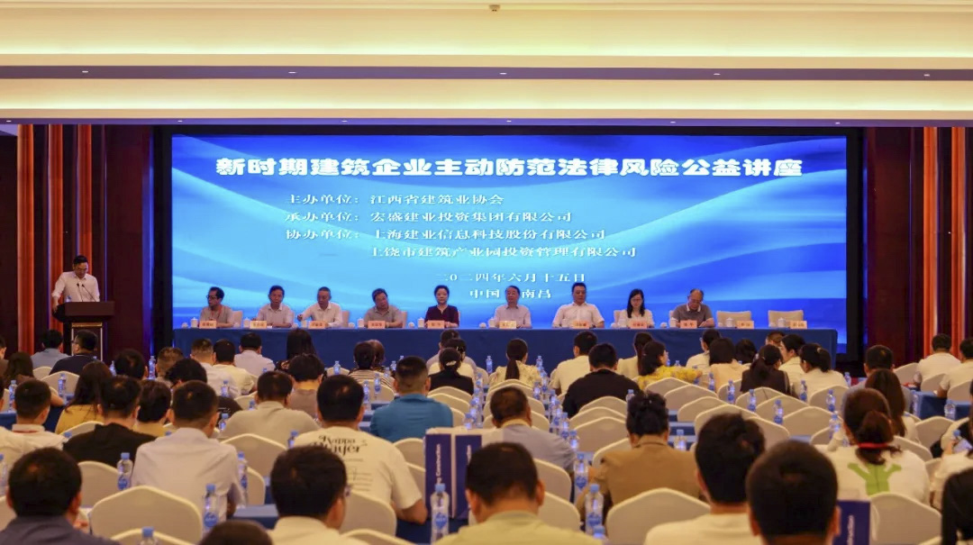 6月15日上午,由江西省建筑業(yè)協(xié)會(huì)主辦、宏盛建業(yè)投資集團(tuán)有限公司承辦、上海建業(yè)信息科技股份有限公司及上饒市建筑科技產(chǎn)業(yè)園投資管理有限公司協(xié)辦的“新時(shí)期建筑企業(yè)主動(dòng)防范法律風(fēng)險(xiǎn)”公益講座在江西·南昌贛江賓館圓滿舉辦。本次講座隆重邀請(qǐng)了江西省住建廳相關(guān)領(lǐng)導(dǎo)、江西省建筑業(yè)協(xié)會(huì)及各分會(huì)領(lǐng)導(dǎo)及專家、各建筑企業(yè)高管及高校負(fù)責(zé)人參與講座,共同分享、交流新時(shí)期下建筑企業(yè)主動(dòng)防范法律風(fēng)險(xiǎn)的整體思路和具體措施,旨在增強(qiáng)建筑企業(yè)法律風(fēng)險(xiǎn)防范意識(shí),規(guī)范企業(yè)經(jīng)營(yíng)行為,促進(jìn)江西省建筑業(yè)健康發(fā)展。