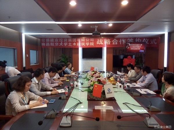 2014年10月17日,宏盛建業(yè)集團(tuán)與南昌航空大學(xué)土木建筑學(xué)院戰(zhàn)略合作簽約儀式在南昌總部大會議室舉行。昌航土建學(xué)院謝洪陽院長和行政人事總監(jiān)何丹分別代表雙方在《戰(zhàn)略合作協(xié)議》《技術(shù)開發(fā)(合作)合同》上簽字,并為共建的實(shí)訓(xùn)基地揭牌。