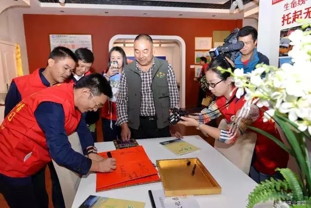 集團公司董事長周金虎在文體中心抗震救災紀念館受邀簽上“重溫援建情,共慶勝利日”