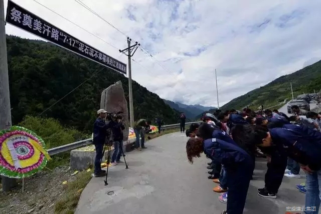 9月1日,所有人員一大早就出發(fā)前往天路“美汗公路”,翻越海拔4916米的木殼梁子埡口,來到紀念碑處,汗牛鄉(xiāng)的群眾們早已在路上列隊歡迎遠方而來的江西親人們。2009年7月17日,突如其來的“7.17”特大泥石流災害,江西省援建者中的五名工友長眠在了這片他們日夜奮戰(zhàn)的雪域高原。