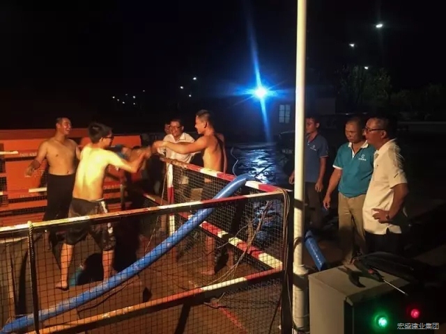 9月8日晚,上饒建筑科技產(chǎn)業(yè)園內(nèi)依舊燈火通明,由項目部年輕管理人員組成的突擊小分隊,在這里挑燈夜戰(zhàn)清淤。