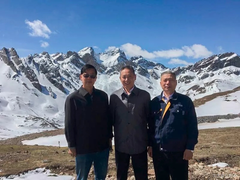 宏盛建業(yè)投資集團有限公司工程部負責人榮十勝(右一)與江西省政協(xié)黨組副書記、副主席(原援建指揮部指揮長)陳俊卿同志(右二)、四川省阿壩州人大常委會副主任李洪勇(左一)在美汗公路邊合影