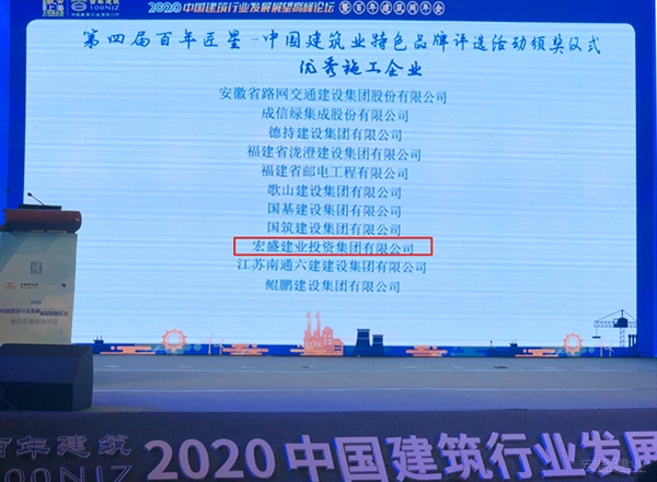 宏盛建業(yè)獲評2019第四屆“百年匠星”中國建筑業(yè)特色品牌企業(yè)