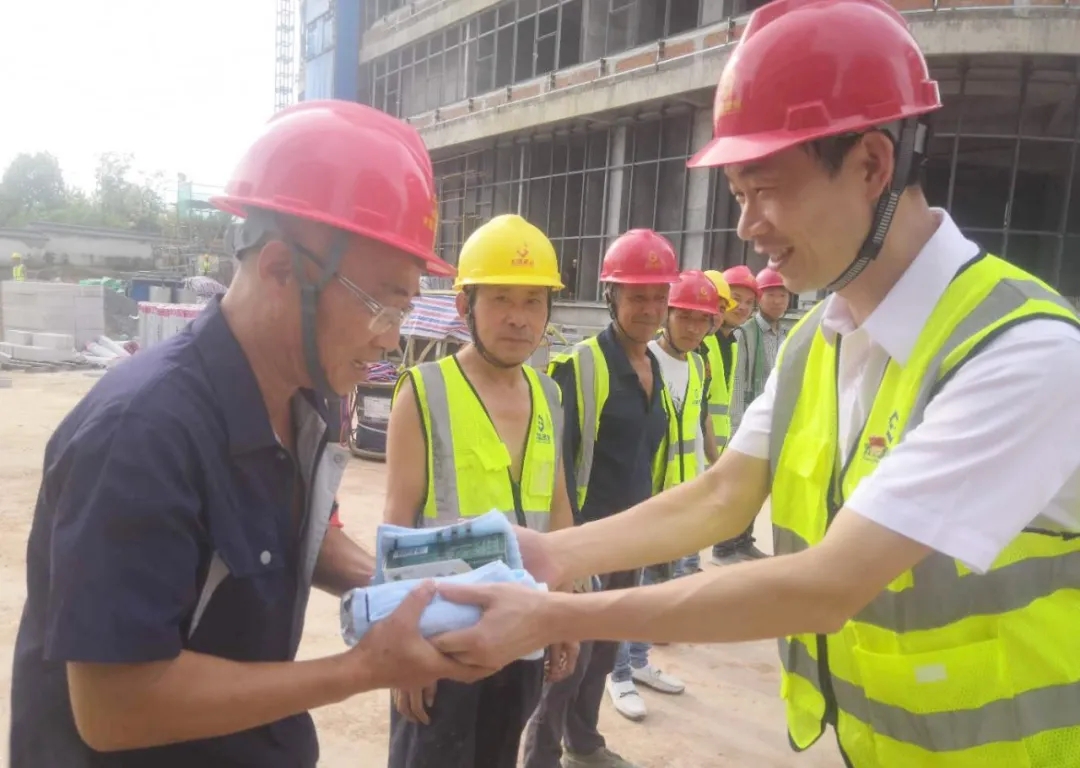 導(dǎo)讀:8月5日,集團(tuán)黨支部副書(shū)記、董辦主任金慧一行,帶著集團(tuán)董事長(zhǎng)周金虎的委托和關(guān)懷,精心準(zhǔn)備了一大批消暑解乏的慰問(wèn)品到項(xiàng)目現(xiàn)場(chǎng)走訪慰問(wèn)宏盛建設(shè)者們。