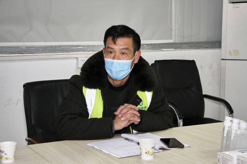 項(xiàng)目經(jīng)理胡亞東向成承監(jiān)事長一行匯報(bào)了現(xiàn)場(chǎng)情況,他表示,現(xiàn)場(chǎng)工人基本已經(jīng)放假,目前就剩下部分項(xiàng)目管理人員在開展節(jié)前收尾布置,項(xiàng)目部按公司制度堅(jiān)持做好疫情防控工作。