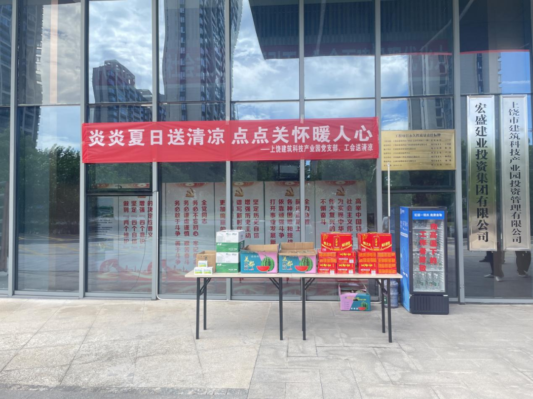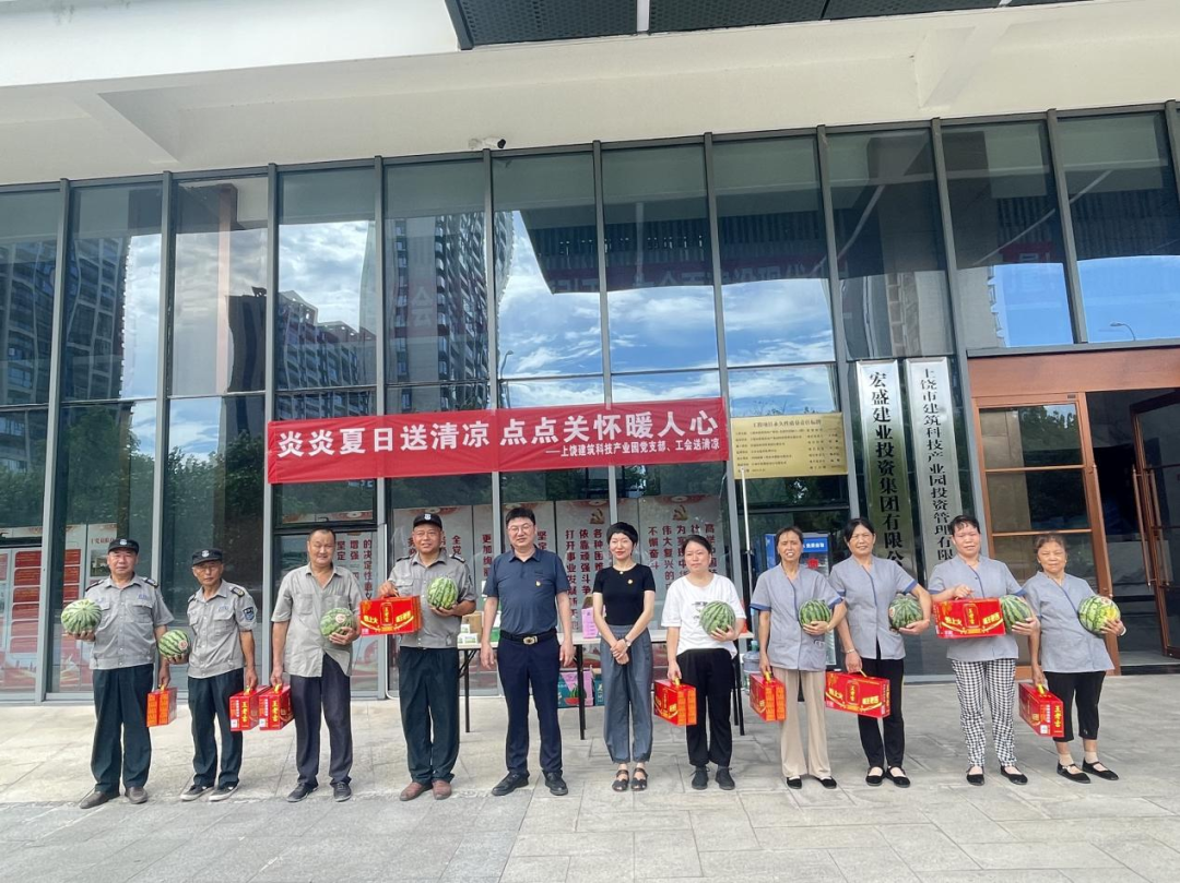 夏日炎炎,保安保潔等工作人員是產(chǎn)業(yè)園安全和環(huán)境的守護(hù)者。7月26日,上饒市建筑科技產(chǎn)業(yè)園黨支部精心策劃,為這些一線戰(zhàn)高溫的工作人員遞溫暖、送清涼。
