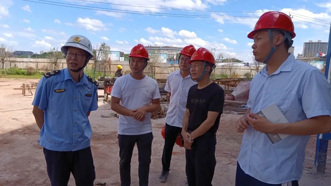 2023年7月27日上午,贛州經(jīng)開區(qū)應(yīng)急管理局李干軍局長(zhǎng)一行5人赴贛州文化藝術(shù)中心項(xiàng)目開展安全生產(chǎn)督促檢查工作,項(xiàng)目部負(fù)責(zé)人葉興武、項(xiàng)目經(jīng)理官輝、監(jiān)理劉永興和項(xiàng)目部臨時(shí)黨支部書記周和水的陪同檢查。