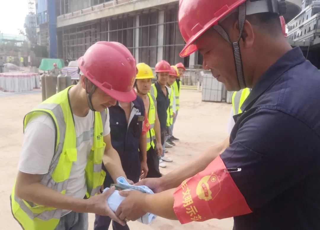 8月5日,集團(tuán)黨支部副書記、董辦主任金慧一行,帶著集團(tuán)董事長(zhǎng)周金虎的委托和關(guān)懷,精心準(zhǔn)備了一大批消暑解乏的慰問品到項(xiàng)目現(xiàn)場(chǎng)走訪慰問宏盛建設(shè)者們。