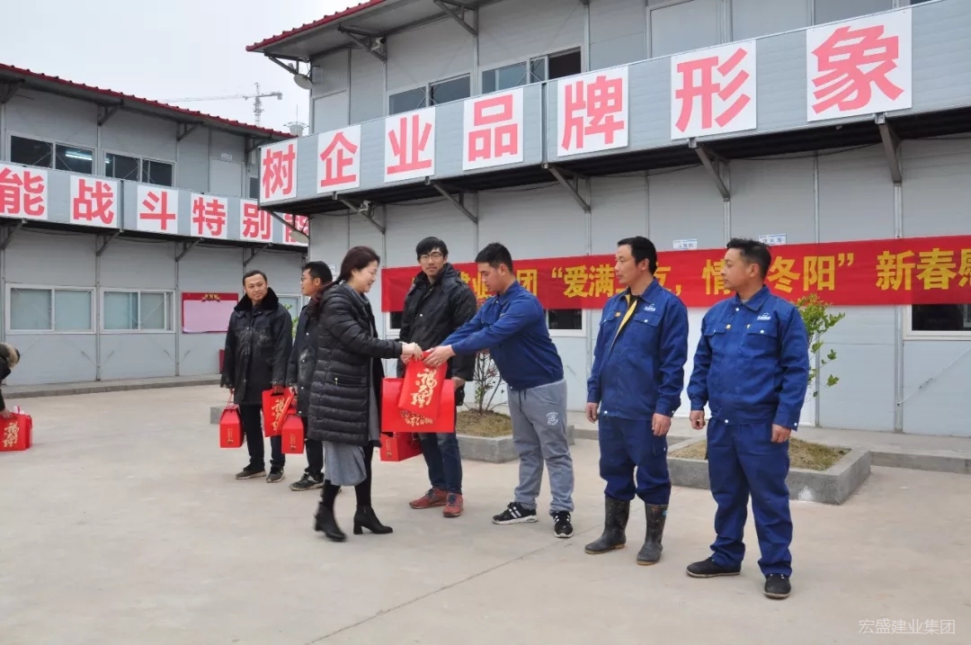 “工友們辛苦了,我代表集團(tuán)周金虎董事長、代表工會來看望慰問大家,給大家拜年了!”2月9日上午,受集團(tuán)周金虎董事長委托,集團(tuán)黨支部書記、工會主席葉文玉帶領(lǐng)有關(guān)人員來到萬年縣六O小學(xué)總部、橫峰縣便民服務(wù)大樓項目工程工地,開展“愛滿工友,情暖冬陽”新春慰問活動,向奮戰(zhàn)在施工一線的項目部全體管理人員,送上集團(tuán)領(lǐng)導(dǎo)和總部機(jī)關(guān)親切關(guān)懷和新春祝福!