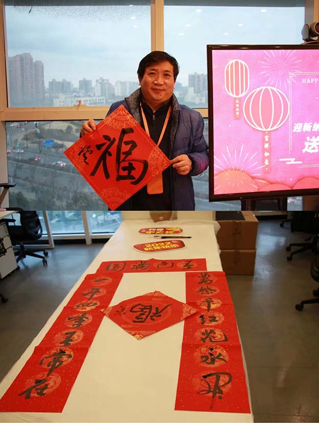 “過新年、貼福字”是中華民族的傳統(tǒng)文化,也是象征吉祥、表達(dá)人們向往美好生活的風(fēng)俗。鮮艷的紅紙,烏黑的墨汁,筆走龍蛇間,用墨香傳遞傳統(tǒng)文化。新春將至,宏盛建業(yè)開展了一場“迎新納‘?!腿f家”活動,以手寫福字的形式,將這充滿年味的暖心祝福提前送給宏盛家人。