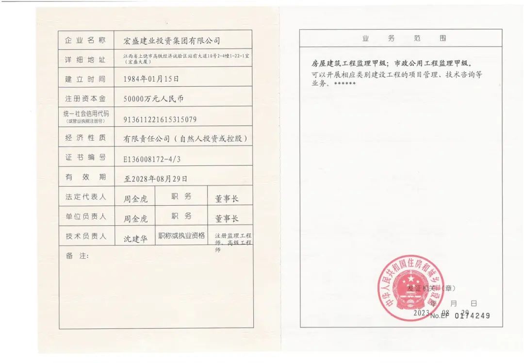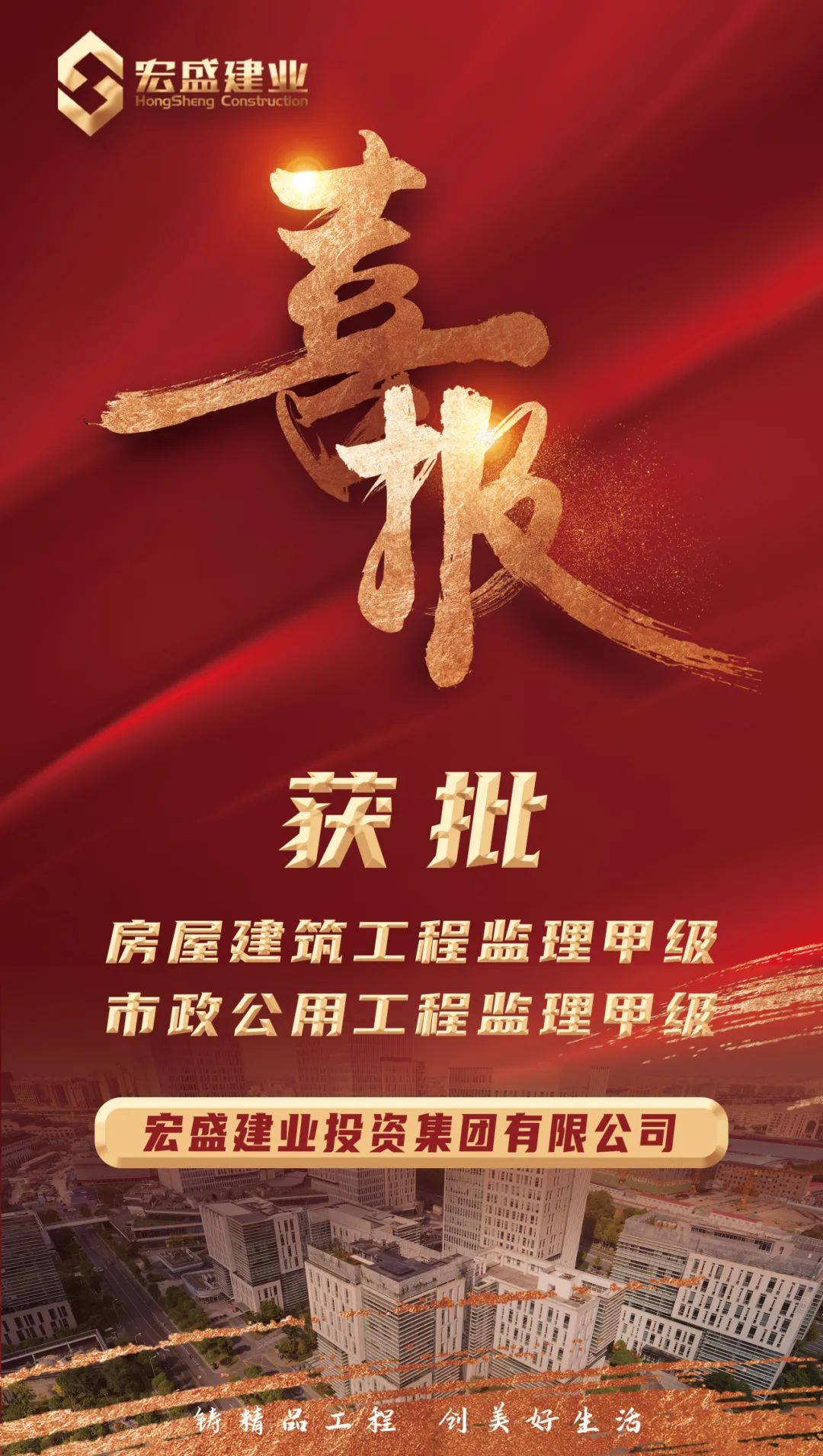 喜訊|宏盛建業(yè)獲批房屋建筑工程、市政公用工程監(jiān)理甲級資質
