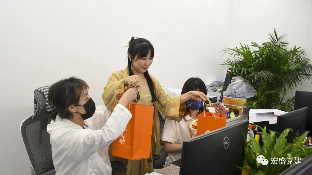 活動中,為弘揚中華傳統(tǒng)文化,黨員志愿服務(wù)者還身著中國古裝漢服,到各個工位為奮斗在崗位上的員工送上月餅禮袋,在福利發(fā)放中,員工們的喜悅之情溢于言表,體會到了滿滿的幸福感和歸屬感,紛紛表示,感謝公司對每位員工的關(guān)懷,一定要轉(zhuǎn)化為積極工作的動力,努力為企業(yè)發(fā)展賦能、為美好生活奮斗。
