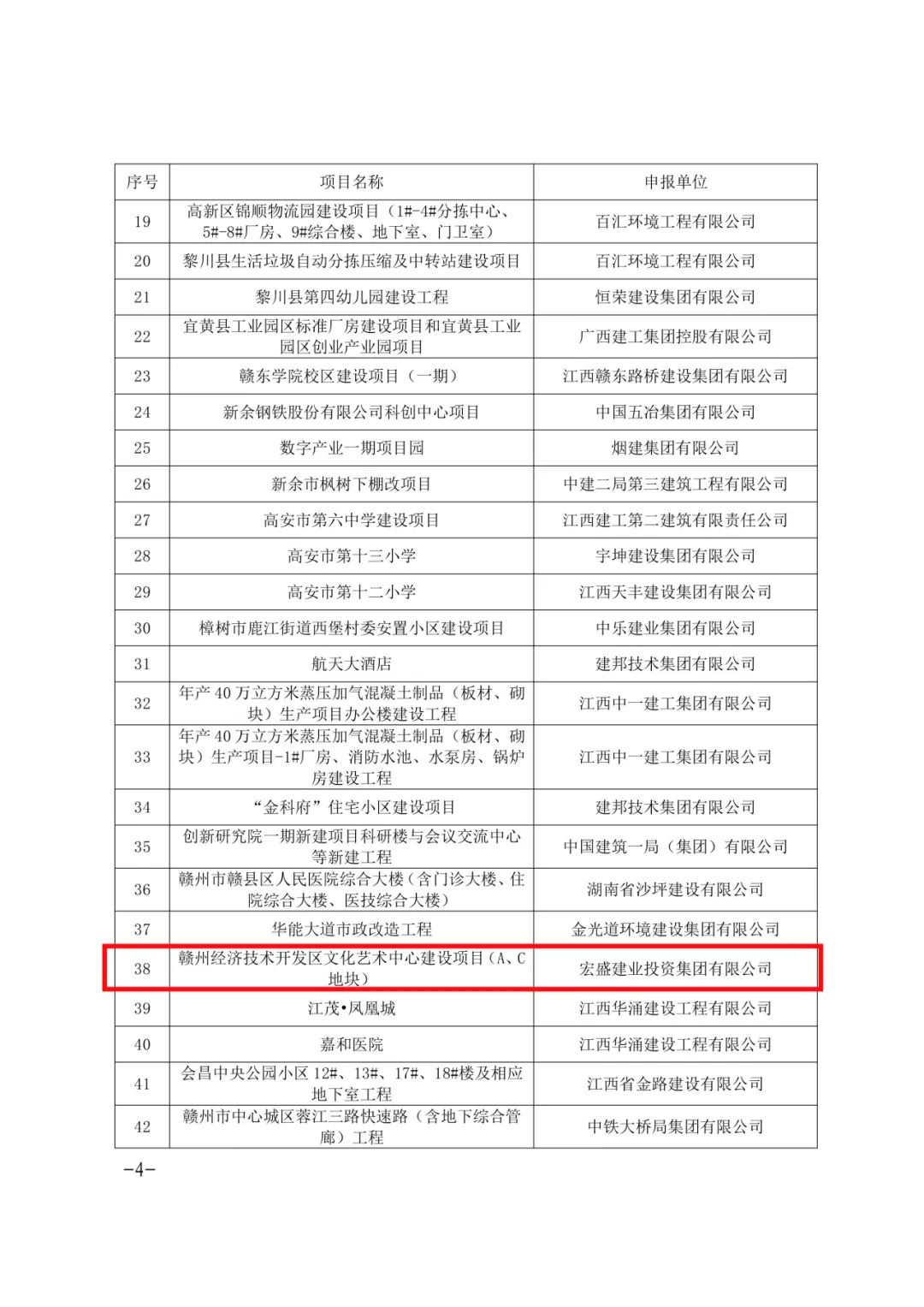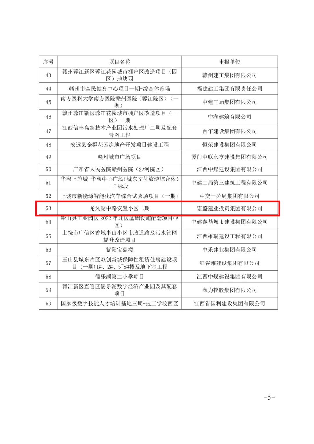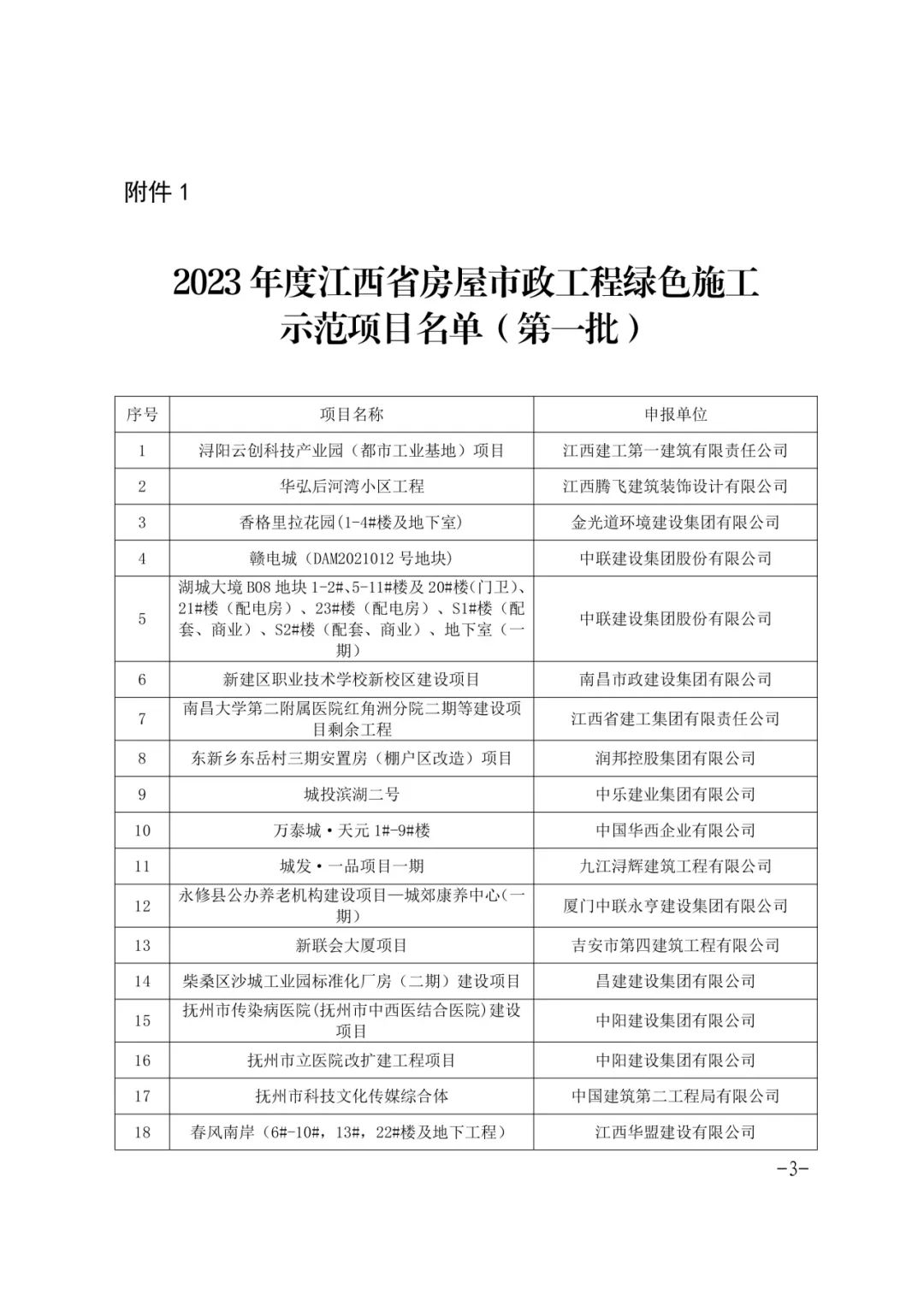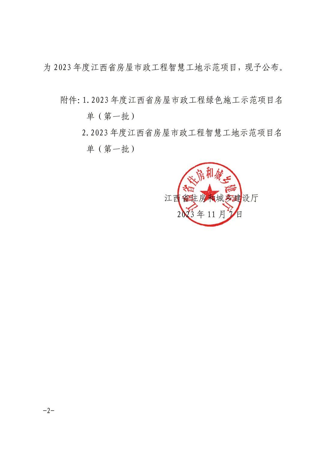 近日,江西省住房和城鄉(xiāng)建設(shè)廳文件贛建城鎮(zhèn) [2023]62號文件發(fā)布了2023年度江西省房屋市政工程綠色施工和智慧工地示范項目名單。由我司宏盛建業(yè)投資集團承建的“龍鳳湖中路安置小區(qū)二期”被評為“2023年度江西省房屋市政工程綠色施工示范項目”、“2023年度江西省房屋市政工程智慧工地示范項目”。“贛州經(jīng)濟技術(shù)開發(fā)區(qū)文化藝術(shù)中心建設(shè)項目(A、C)地塊”被評為“2023年度江西省房屋市政工程綠色施工示范項目”。