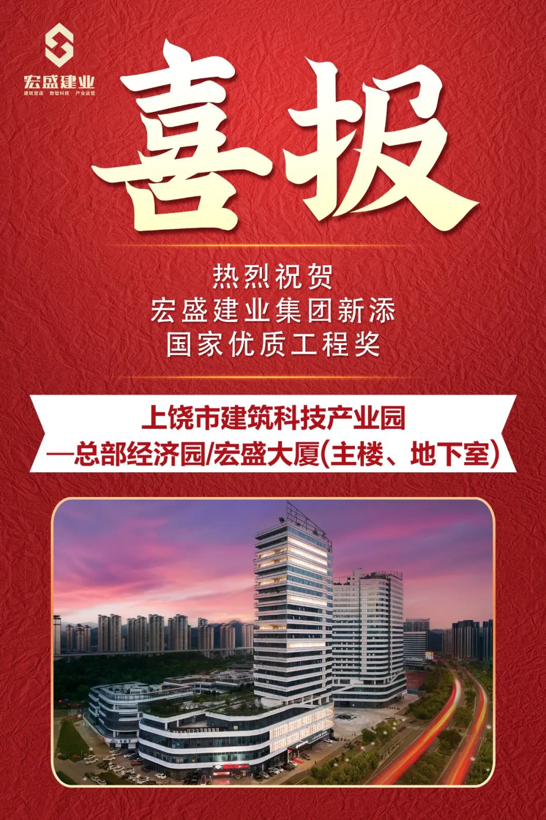 12月9日,中國施工企業(yè)管理協(xié)會發(fā)布《關(guān)于公布表彰2022—2023年度國家優(yōu)質(zhì)工程獎的決定》,由宏盛建業(yè)投資建設(shè)運營的“上饒市建筑科技產(chǎn)業(yè)園—總部經(jīng)濟園/宏盛大廈(主樓、地下室)工程”成功入選國家優(yōu)質(zhì)工程獎。這是本項目繼榮獲中國建設(shè)工程魯班獎后,再獲國家級質(zhì)量獎的殊榮。