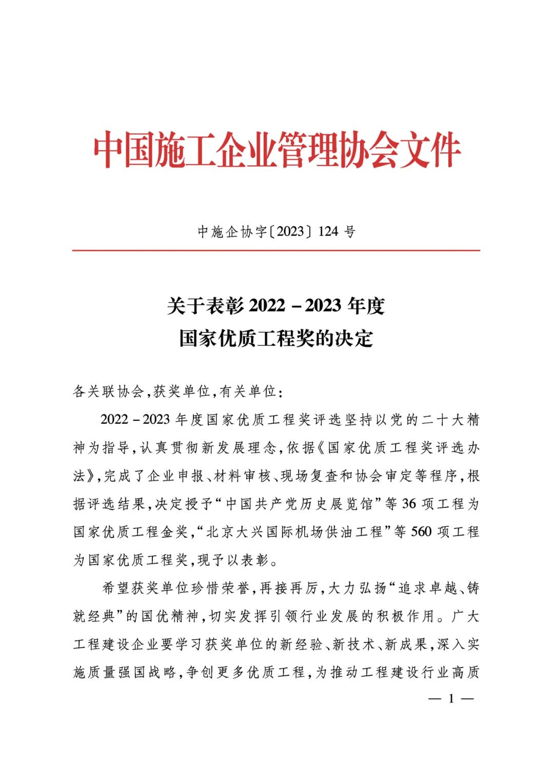 國家優(yōu)質(zhì)工程獎