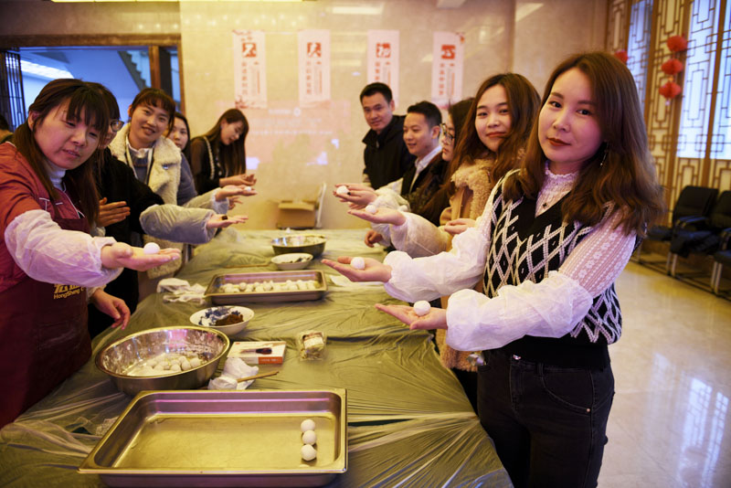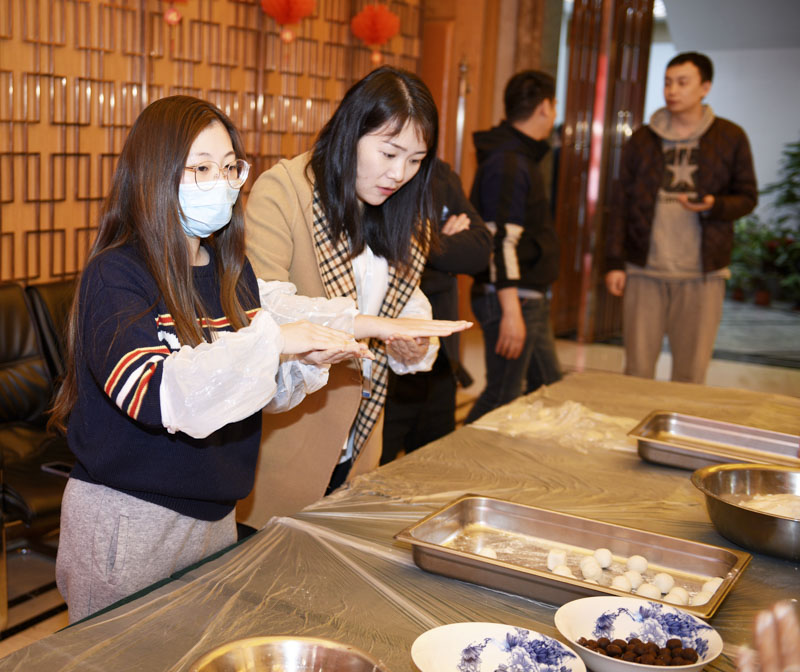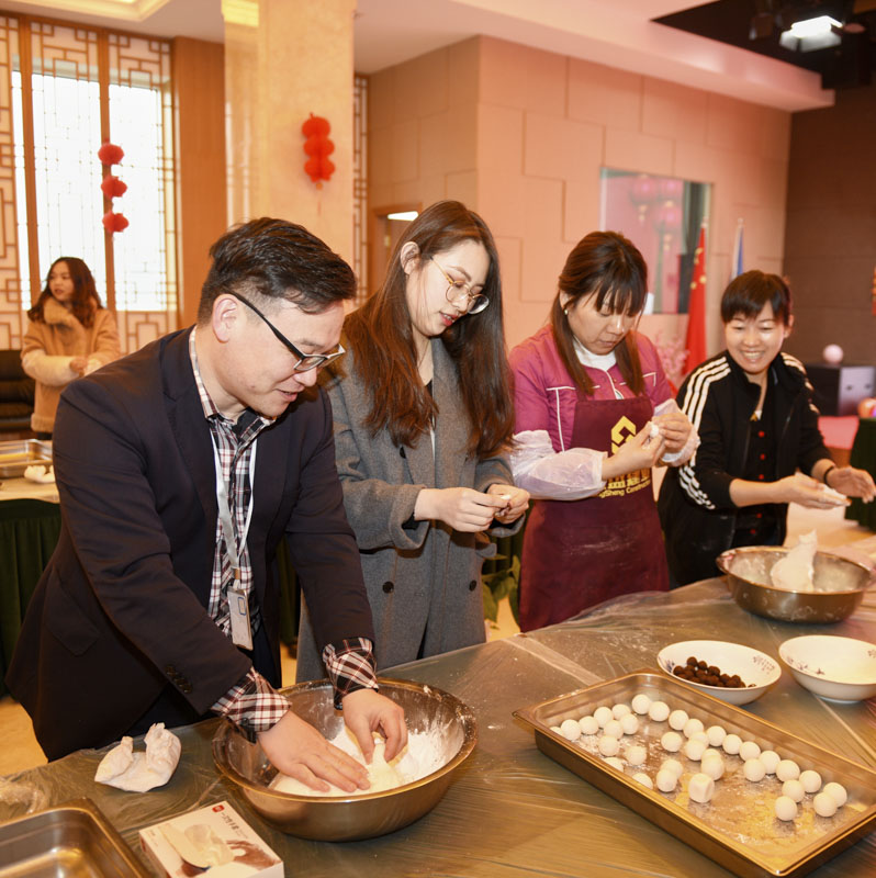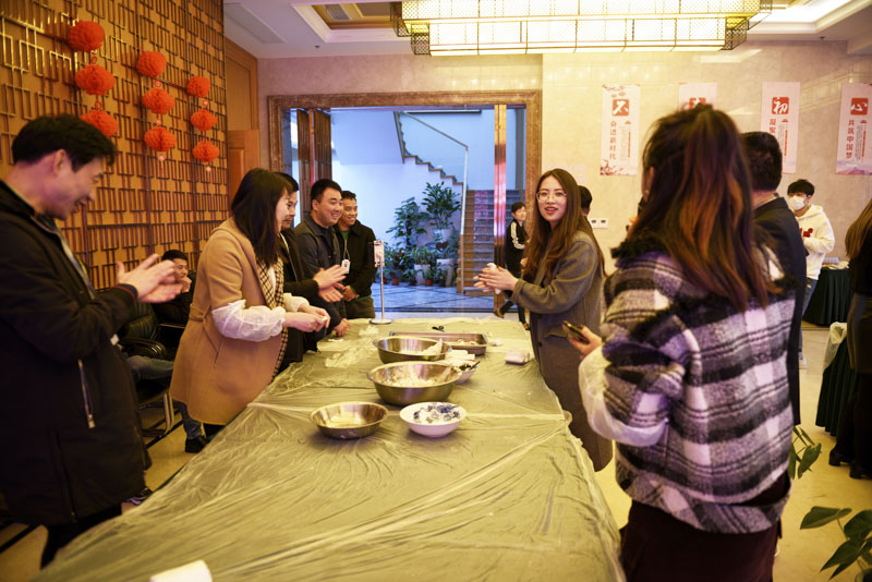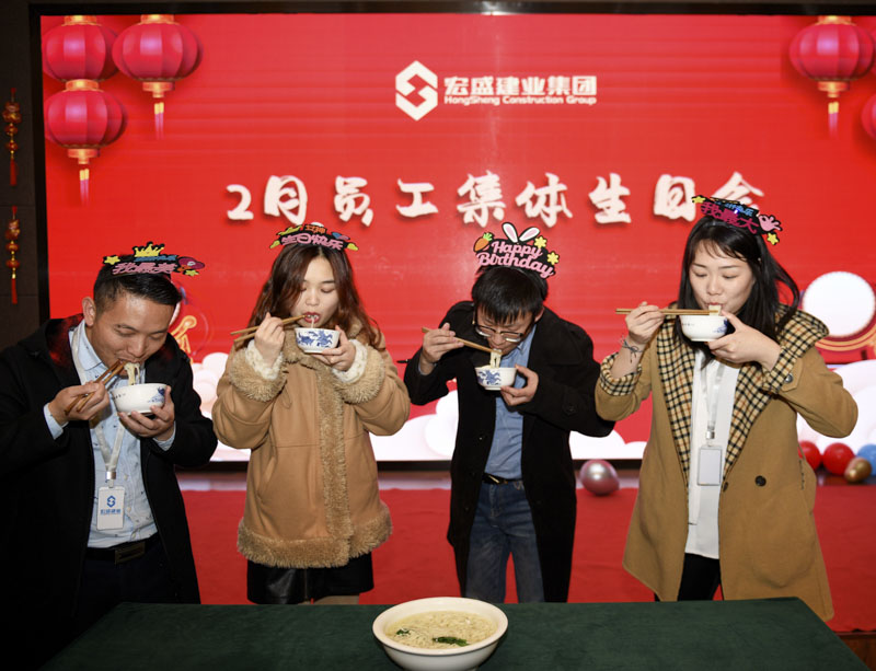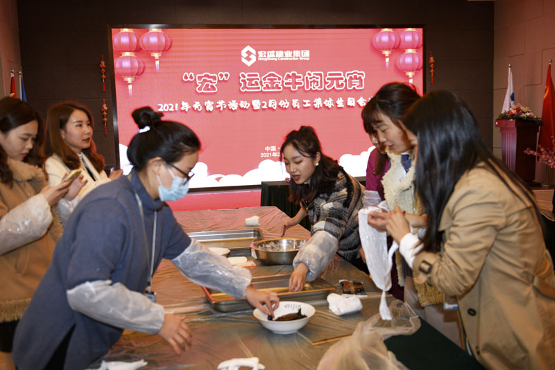 線下活動現(xiàn)場,華燈荏苒,燈和景明,2月生日的員工代表一起吃長壽面。宏盛家人們齊聚一堂,舉行包元宵競賽,在傳承民粹中,共享勞動成果,品味幸福甜蜜,現(xiàn)場歡聲笑語不斷,氣氛溫馨祥和。