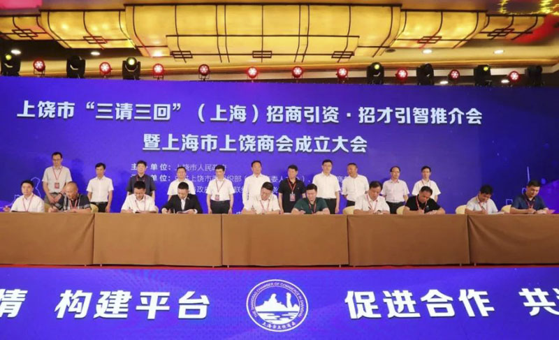 8月1日下午,上饒市“三請(qǐng)三回”(上海)招商引資·招才引智推介會(huì)暨上海市上饒商會(huì)成立大會(huì)在上海華亭賓館隆重舉行。集團(tuán)董事長(zhǎng)周金虎當(dāng)選上海市上饒商會(huì)會(huì)長(zhǎng),并在推介會(huì)上與上饒市政府簽訂擬投資40億元落戶上饒經(jīng)開區(qū)的數(shù)智電子科技園項(xiàng)目。