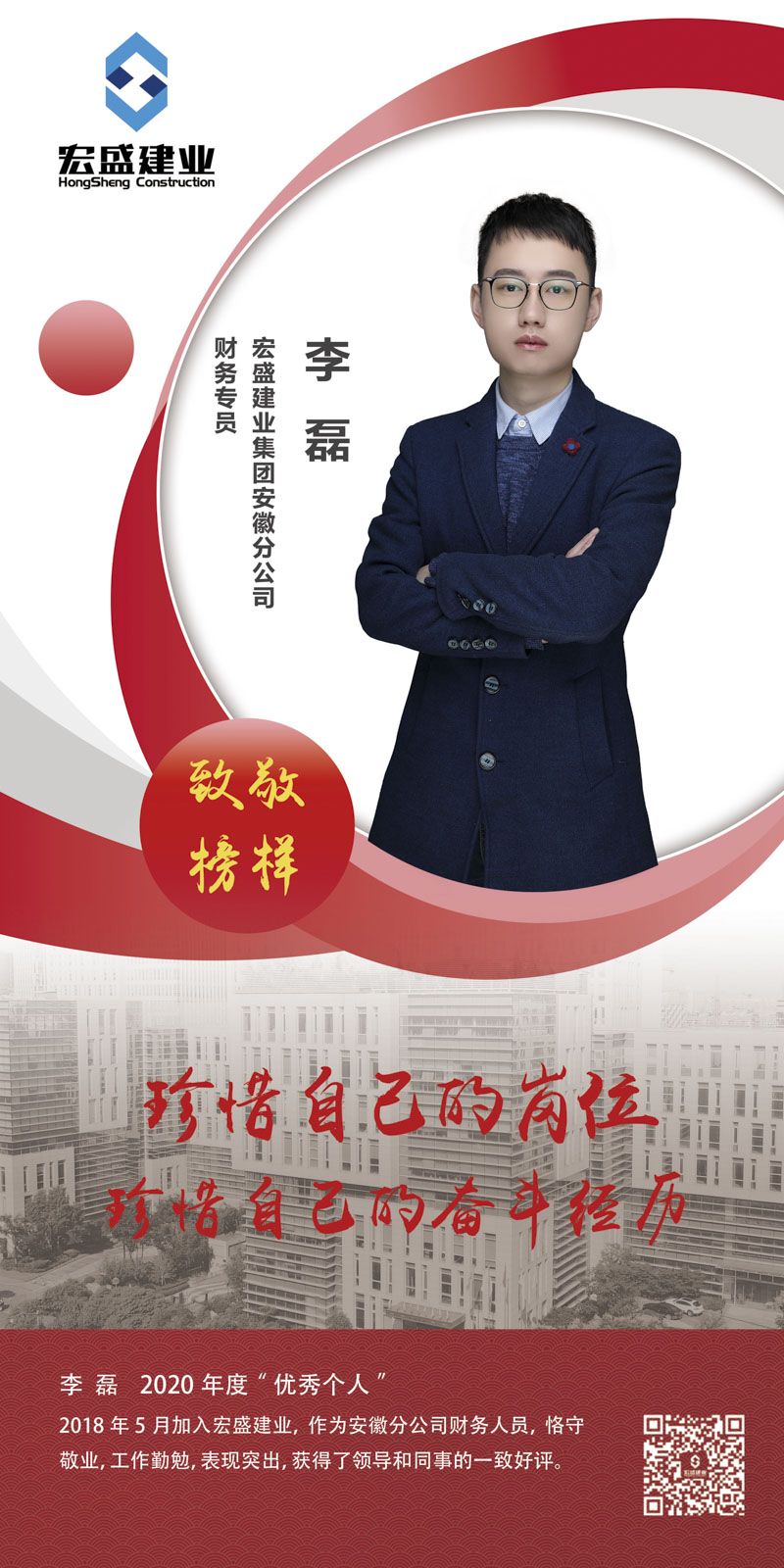 2018年,李磊加入集團(tuán),2019年入職集團(tuán)安徽分公司擔(dān)任財務(wù)專員。負(fù)責(zé)處理安徽分公司日常費用報銷、辦公室用品采購事宜,同時也要負(fù)責(zé)跟進(jìn)、對接安徽分公司范圍內(nèi)所有項目從開具外經(jīng)證到撥付工程款的一系列配套工作。除此之外,他還兼任了集團(tuán)樂平市第十九小學(xué)項目財務(wù)工作及項目分公司工作。