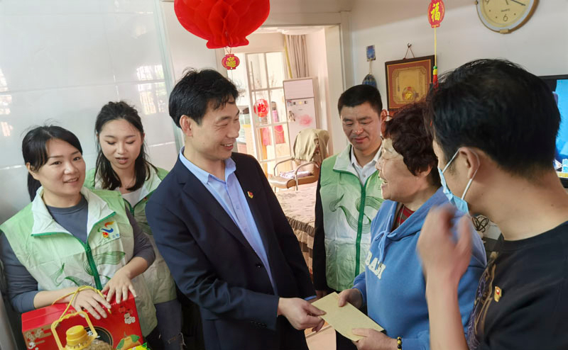 集團監(jiān)事、綜合發(fā)展中心總經(jīng)理陸冰、黨支部副書記金慧一行在社區(qū)工作人員的陪同下走訪、探望社區(qū)困難家庭,并為他們送上了米、油、水果、牛奶等生活用品和慰問金。