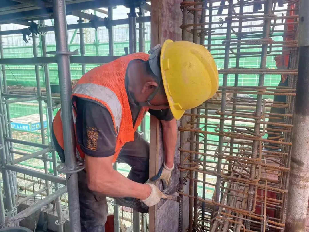 在上饒龍鳳湖中路安置小區(qū)項(xiàng)目施工現(xiàn)場,五一假期不停歇,施工現(xiàn)場一片熱火朝天,工人們有條不紊地忙碌著,扎鋼筋、搭腳手架、搬木料、砌墻板……,每項(xiàng)施工、每個動作都伴隨著辛勤的汗水。